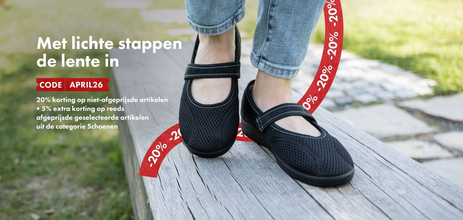 Meer lezen-20 % op niet afgeprijsde schoenen en extra 5 % op afgeprijsde schoenen met code APRIL26 👟 Gezondheidsdag ❤️🩹 -15 % op niet-afgeprijsde producten uit de categorie verzorging en gezondheid 🔖 Code: HEALTH15