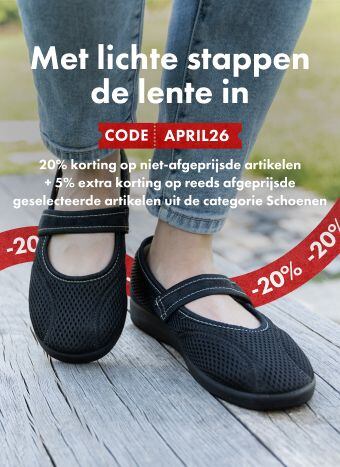 -20 % op niet afgeprijsde schoenen en extra 5 % op afgeprijsde schoenen met code APRIL26 👟 Gezondheidsdag ❤️🩹 -15 % op niet-afgeprijsde producten uit de categorie verzorging en gezondheid 🔖 Code: HEALTH15